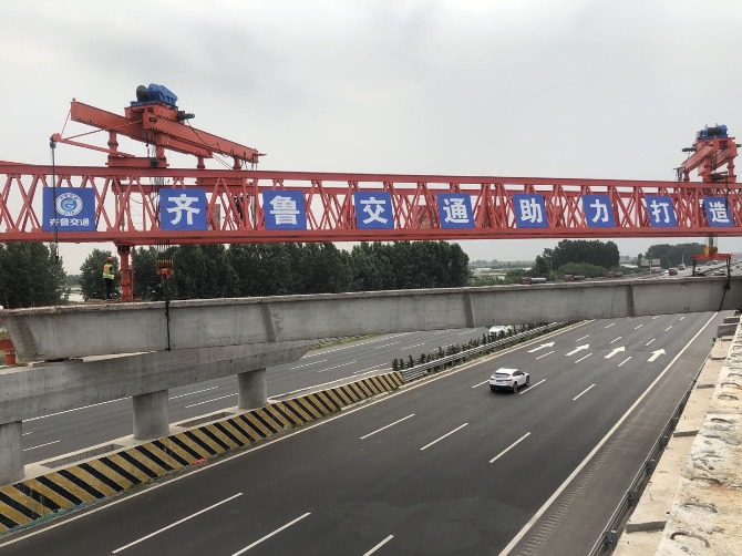 > 山東濟(jì)南跨高速40米53度斜角箱梁架設(shè)JQ200-45架橋機(jī)